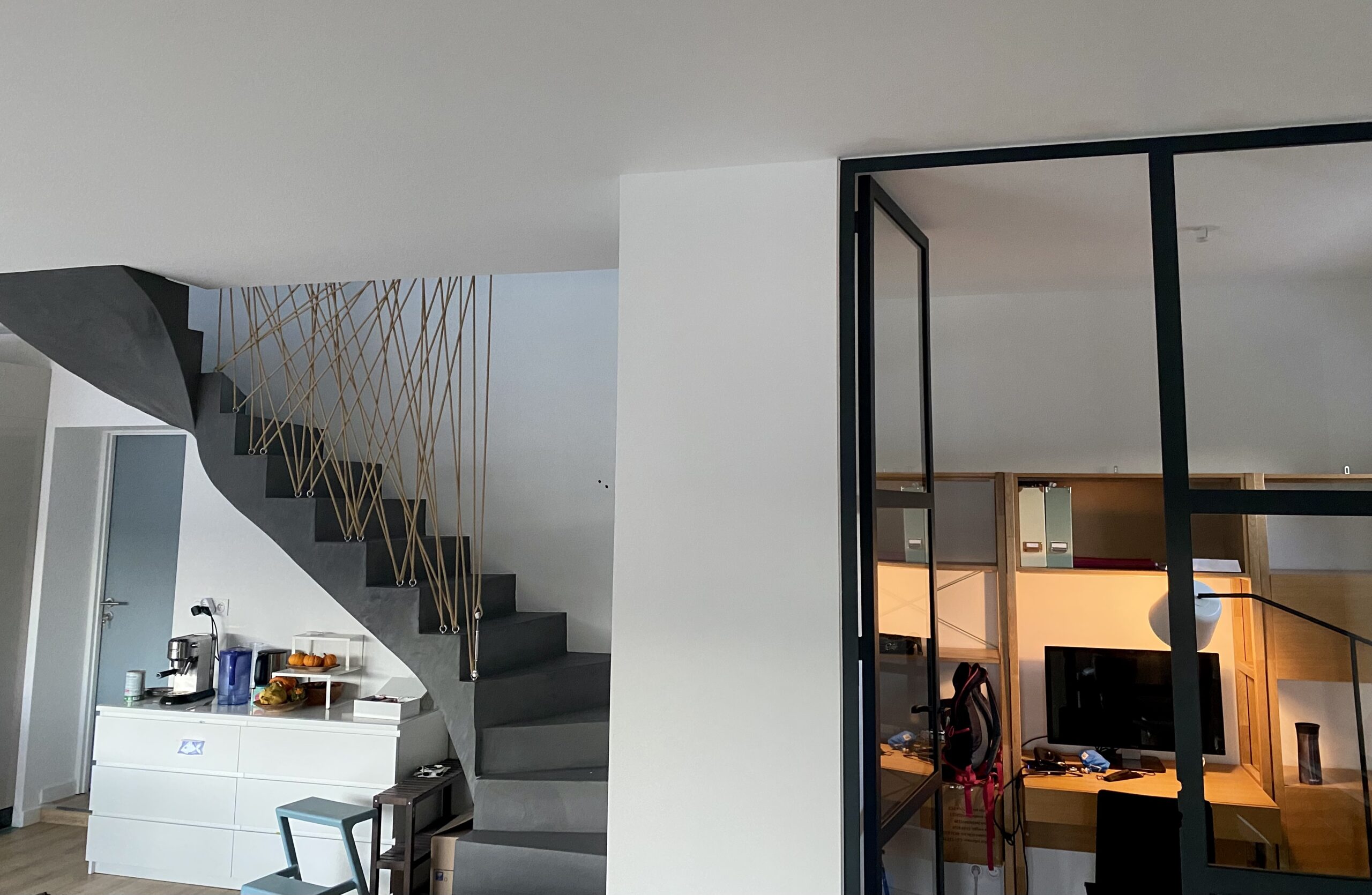 Elément décoratif en drisse de bateau, sur un escalier scal’in, dans une propriété à Castelnau-le-Lez entre Mauguio et Saint-Gély-du-Fesc, dans le département de l’Hérault.